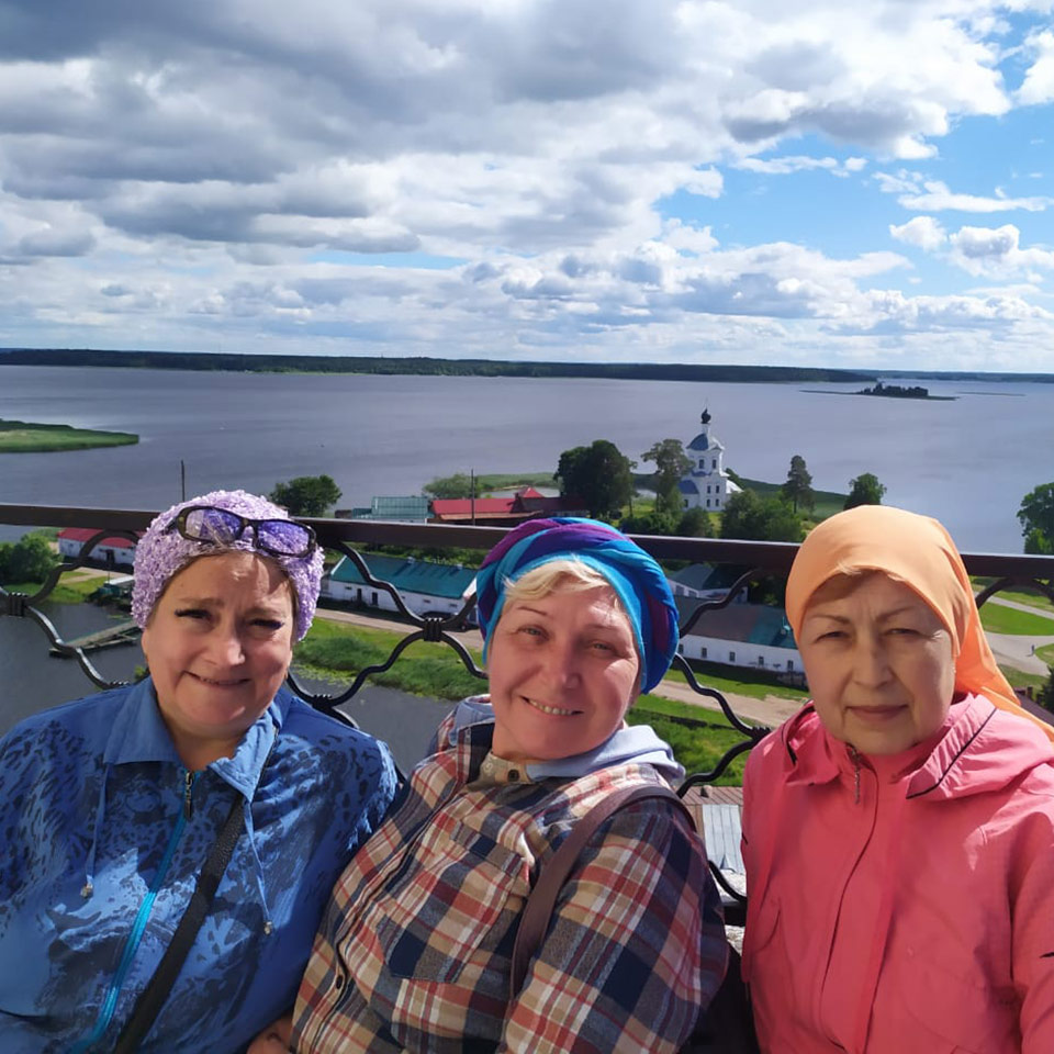 Воскресную литургию служили в самом монастыре, где находится чудотворная икона Божией Матери Смоленская Одигитрия. На следующий день в лавке нам подсказали поехать еще на один праздник на Елисаветское подворье в д. Петриково на берегу живописного озера Сиг с храмом во имя преподобномученицы Великой Княгини Елисаветы и инокини Варвары.