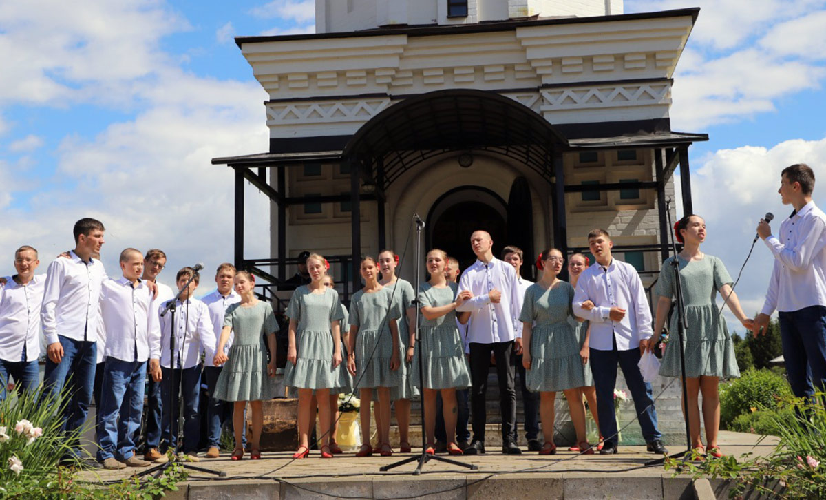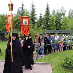 Божественная литургия проходила на улице возле скита. Погода была изменчивая - тучи с мелким дождем. Но во время пения «Верую» и «Отче наш» показывалось яркое солнце и сразу было тепло. А на душе тепло и не уходило. Дети пели в хоре, которым руководит матушка — супруга о. Владимира. А потом снова был концерт, опять же на улице. Гостям предоставили лавочки и погода была чудесная. На память мы снова сделали фотографии с матушкой Елисаветой. После праздника нас пригласили на трапезу. Все продукты были очень вкусные и натуральные, здесь же выращенные. По нашей просьбе провели экскурсию по скиту. Увидели мы много: и растениеводство, и животноводство — всё для производства экологически чистых продуктов для здорового питания.