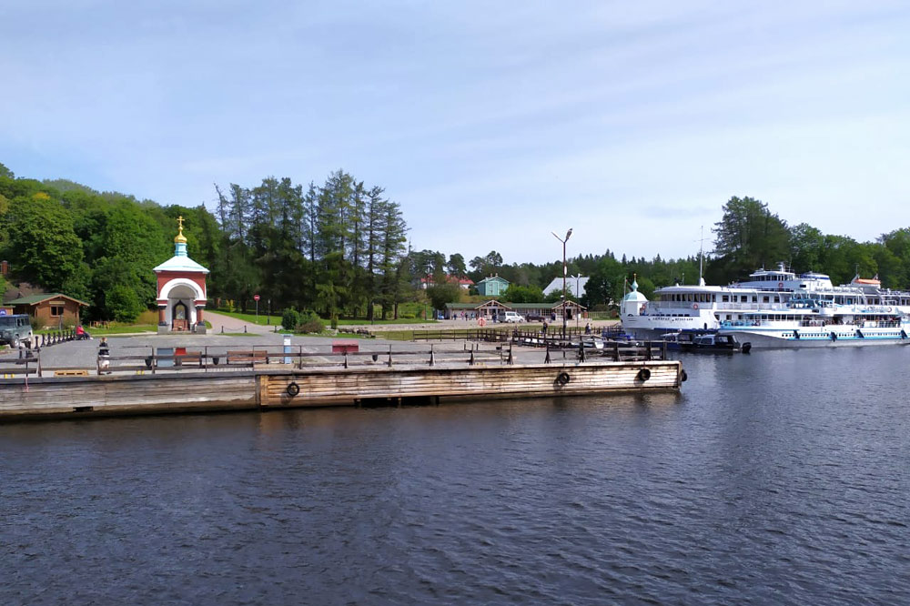 скит во имя Всех Святых; скит во имя пророка, Предтечи и Крестителя Господня Иоанна (Предтеченский); скит во имя Смоленской иконы Божией Матери (Смоленский); Гефсиманский скит; Воскресенский скит; скит во имя Коневской иконы Божией Матери (Коневский). Доплыли на Святой остров в скит во имя преподобного Александра Свирского (Святоостровский).