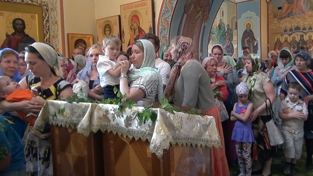 Это совершенно необычное зрелище, согласитесь, когда храм устлан либо душистым сеном, либо только что скошенной травкой, там и сям виднеются розы, ромашки, васильки, смотря по вкусу украшавших Божий храм, и народ, преклонив колена, затаив дыхание, как один человек с благоговением и трепетом слушает молитвы, которые воссылаются от лица всей полноты церковной устами священника к Триипостасному Божеству. К Богу, Который нас видит и слышит, любит и являет Себя нам в Отце безвидном, вечном, всесвятом, в посланном Им в мир Единородном Сыне Боге во плоти, Который восходит плотию на крест, восстает из мертвых… Который, взойдя в обители Отца, низводит нам Духа Святого, часто изображаемого в виде голубя – таким, как созерцал Духа Святого Иоанн Креститель.