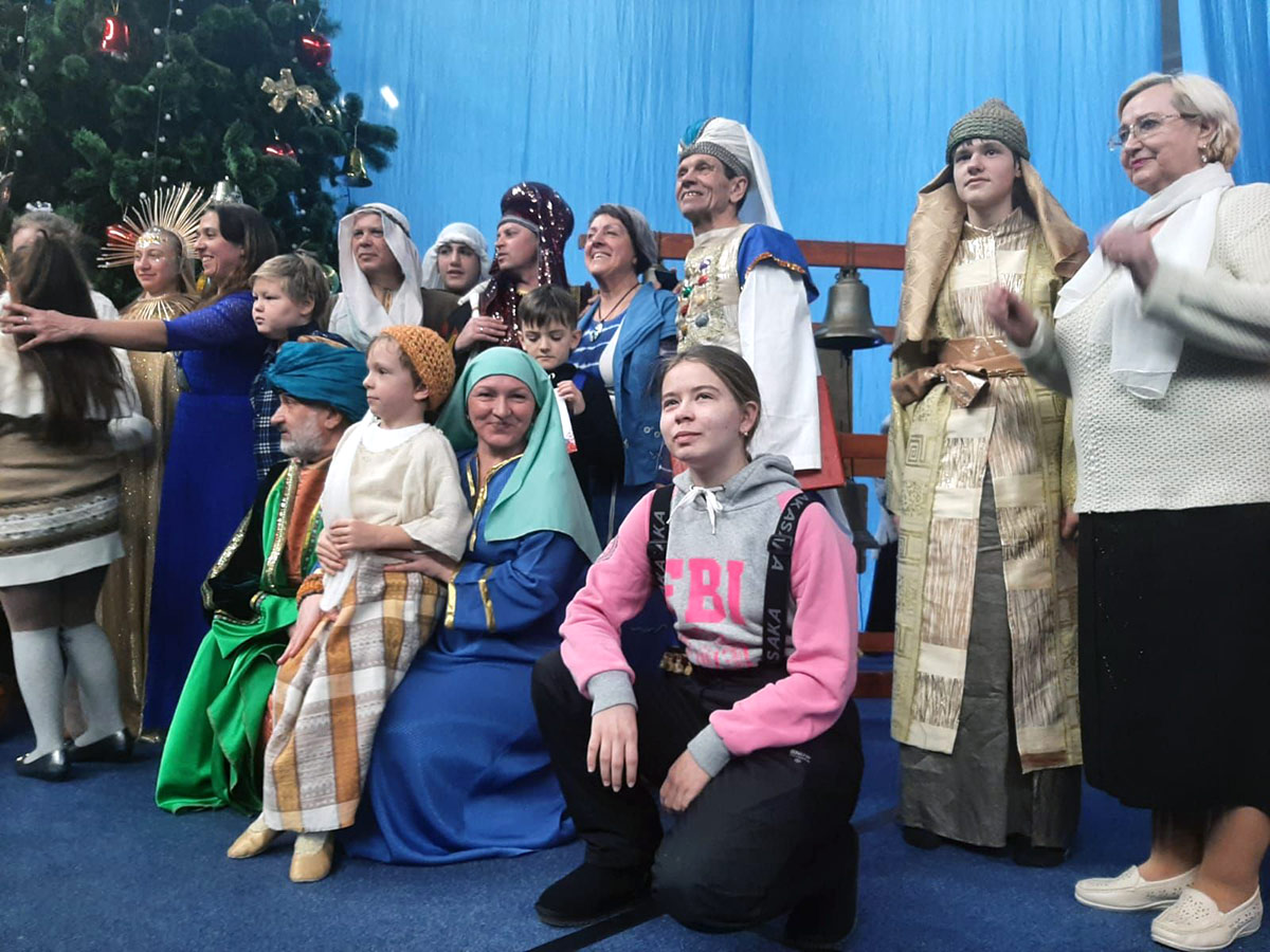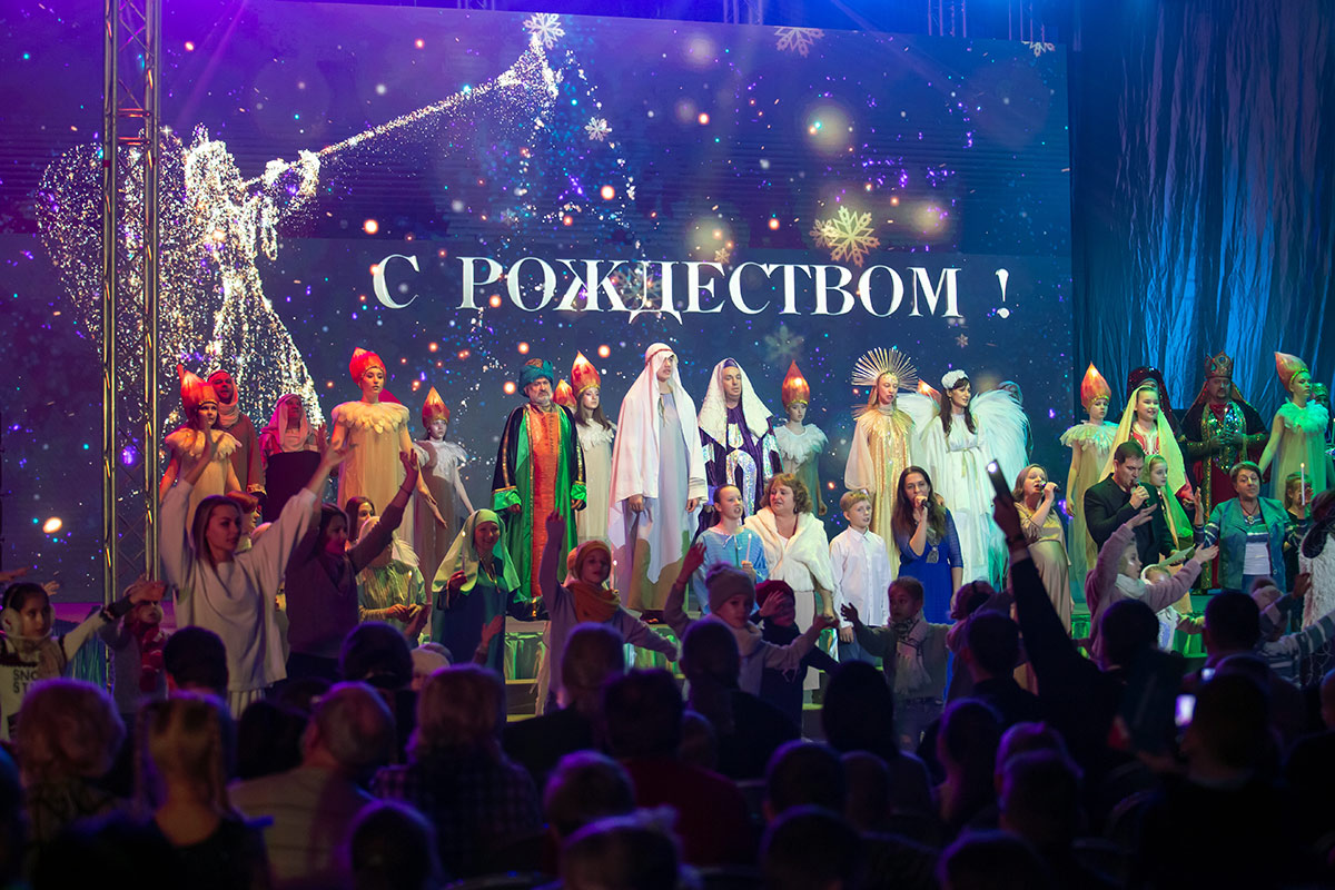 После согласования и утверждения сценария спектакля «Путешествие в Рождество» началась дальнейшая подготовка: создание костюмов, подбор хореографии, набор желающих участвовать в спектакле и конечно репетиции. Начали репетировать в хореографическом зале Воскресной школы, затем в бальном зале КДЦ «Дружба» и с 5 января во Дворце спорта «Олимпийский» им. В.С. Максимова».