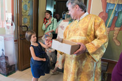 В день празднества Успения Пресвятой Богородицы по окончании Божественной литургии был отслужен молебен на начало учебного года. Родители и дети собрались, чтобы получить помощи Божией в учебе и благословение на новый учебный год.