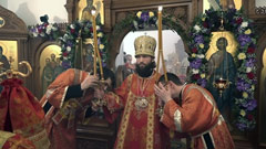 Затем владыка Петр подарил настоятелю храма о. Алексию икону Феодоровской Божией Матери в память о сегодняшней службе и поблагодарил его за усердие.