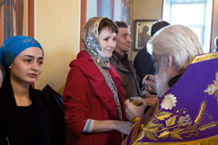 Великим Постом это была вторая служба Елеосвящения. Для многих она была знакома, а для "новоначальных" о. Георгий объяснил как стоять, что делать с руками, какие молитвы будут звучать во время этого Таинства, сколько раз будет проходить священник, что можно и надо делать с освященным маслом. Сослужил о. Георгию протоиерей о. Василий.