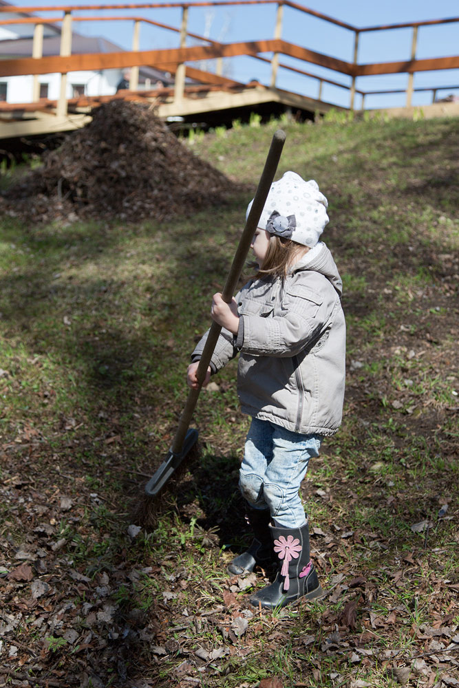 После воскресной литургии к часу дня возле храма стали появляться прихожане с граблями, лопатами, мешками. Они пришли, чтобы после снежной зимы привести в порядок прихрамовую территорию. Хотя явного мусора не было, но старая пожухлая трава, опавшие листья, пыль "забивали" свежую зеленую травку, пробивавшуюся на свет.