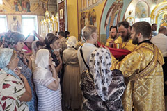 По приезду, владыку Аксия встретили прихожане и ученики воскресной школы. Прочитав поздравительные стихи, они вручили Владыке букет цветов. По окончании богослужения настоятель храма поздравил всех прихожан с юбилеем, упомянув старейших "первопроходцев", поблагодарил Владыку Аксия за молитву и преподнес ему икону Рождества Иоанна Предтечи. Архиепископ Аксий обратился к верующим с поздравительным словом, поблагодарил всех за совместную молитву и преподнес в дар икону Собора Серпуховских святых.