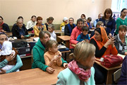 По окончании праздничного богослужения и поздравления о. Георгия с днем рождением родители с детьми, педагоги собрались на молебен на начало учебного года в воскресной школе. После молитв и окропления святой водой детки получили на выходе маленький сувенир и с родителями отправились на организационное собрание — познакомиться с целями, задачами и правилами воскресной школы.