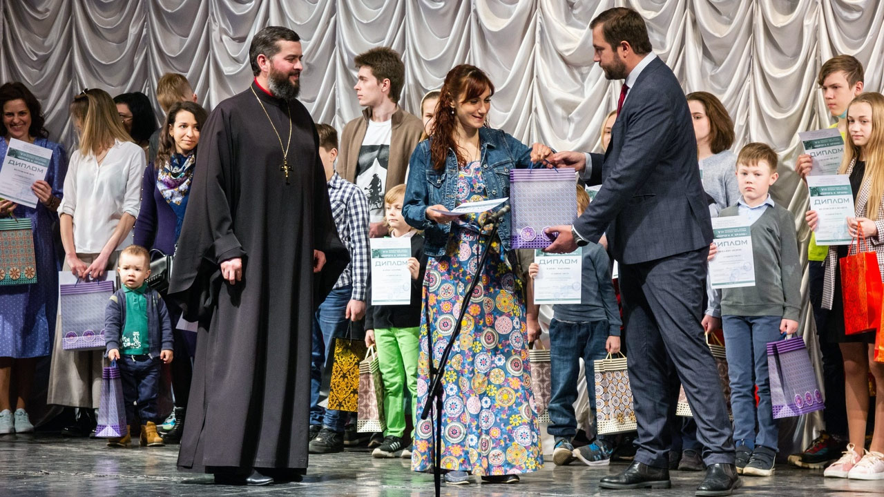 Перед представлением прошла торжественная церемония награждения победителей VII конкурса молодых фотографов городского округа Чехов «Дорога к храму». Дипломы и подарки победителям вручили благочинный Чеховского округа священник Константин Александров и заместитель главы г.о. Чехов Михаил Собакин.