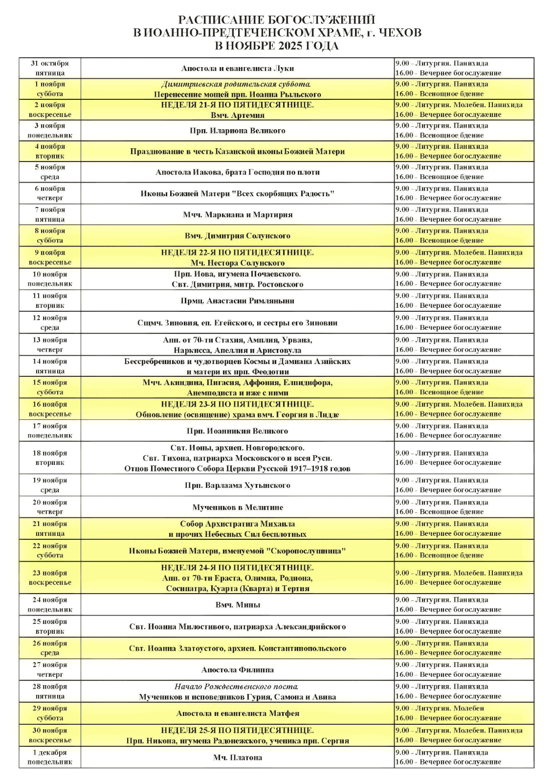 Храм :: Расписание