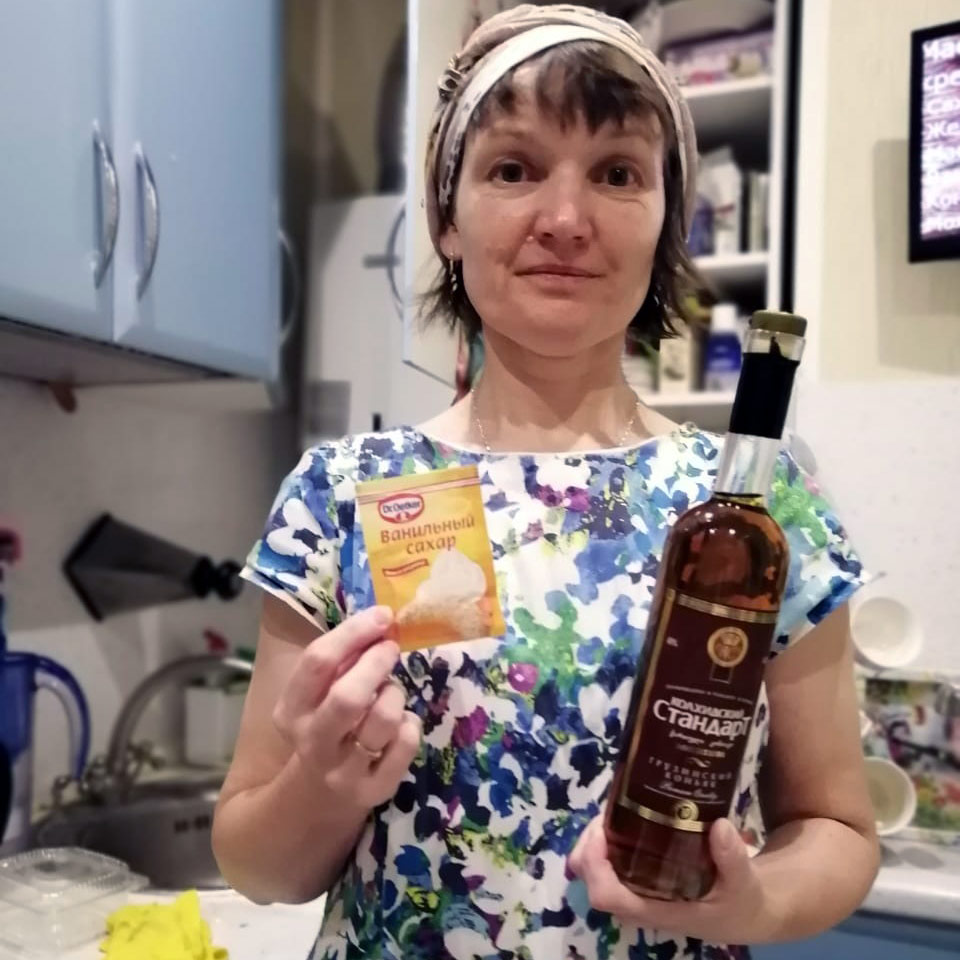 Крем в этот раз решили сделать на совесть, даже добавили припасенный коньяк, но опять же доверились бездумно видеорецепту и свежеприготовленный заварной крем сразу с огня плюхнули во взбитое сливочное масло. И что мы получили? Вместо крема мы тут же получили топлёное масло. В рецепте хотя бы предупредили, что надо остудить крем. А как можно начинять "лаваши" растопленным маслом?