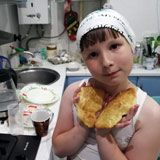 Пришлось ждать пока масло снова загустеет и тогда уже начинять, а где-то и просто намазывать крем на то, что у нас испеклось. Для глазури растопили шоколадку. Потом пригласили Катюшу-библиотекаря в гости пробовать эклеры. Все остались довольны. Получилось вкусно. Мы с Танюшкой решили, что будем печь до тех пор, пока не сделаем как надо.